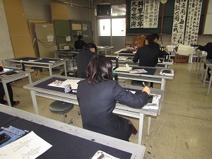 高校書道展に向けて、書道部が作品制作を行っています。どんな作品ができるか楽しみですね。12月20日(火)から25日(日)まで県立美術館分館で展示されるので、是非見に来てください。