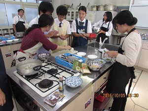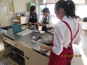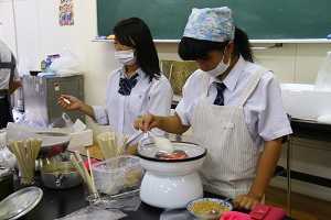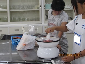 本日放課後、調理実習室で白玉だんごの試作が行われていました。