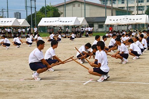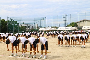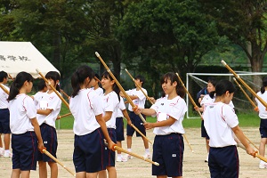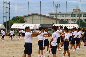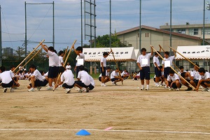 本日午後から1年の紫電一閃、2・3年男子の棒体操、2・3年女子の創作ダンスを行いました。