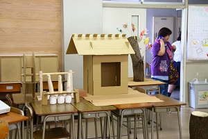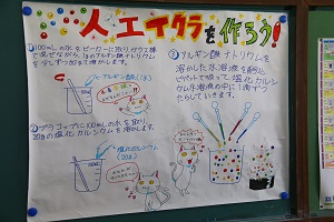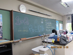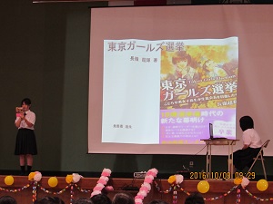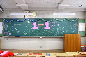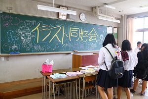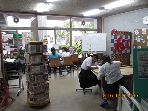 図書室前では図書委員が文化祭の発表の準備をしていました。楽しみですね。
