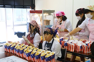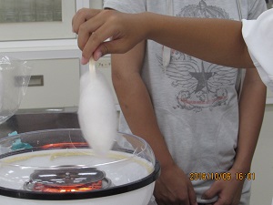 調理室では食バザーの試作が行われていました。美味しそうな綿菓子が出来上がっていました。