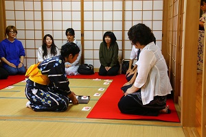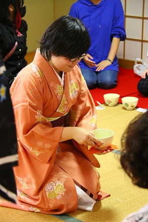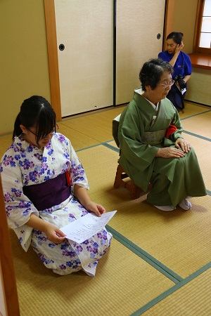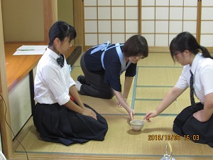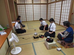 礼法室にお邪魔しました。茶道の練習が行われていました。