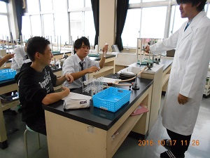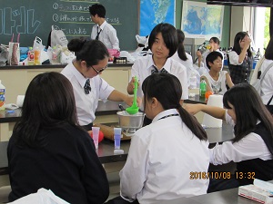 化学の授業風景です。銅イオンと銀イオンの性質について生徒は実験を通して学んでいました。