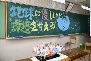 生徒会の生徒が文化祭の飾りつけの準備をしていました。