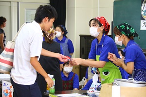 育友会の方による生徒全員への炊き出し(カレー・ジュース・豚丼)