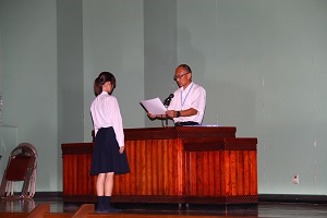 この湧心祭に自分がどれだけ関わり、準備をすることができたかを振り返ってほしいと話された。しっかりクラスや部活動、委員会の活動に関わり、準備をしてきた生徒にとっては、やりきったという充実感、満足感、達成感があるでしょう。しかし、何もせず、迷惑をかけ、先生方の恩に報いることをしなかった生徒には何も残らない。成長がない。学校行事で皆が成長できるように、まずは自分の行動を振り返り、次に生かしていこうと語られた。