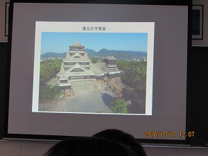 本日4限目に熊本市役所の方に来ていただき、「熊本城と大地震」というテーマで、お話をして頂きました。今回の熊本地震で熊本城にどのような被害があり、これからの復元に向けて課題は何かなど復元を担当されている生の声を聴くことができました。