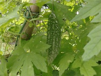 環境美化・園芸クラブで植えたゴーヤに実がなり始めました。