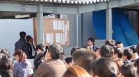 熊本市消防局出水出張所から5名、(株)雄光様(消火器販売会社)のご指導のもと、避難訓練を実施しました。今回は出火場所を事前に知らせない状況での訓練だったこともあり、避難完了までに多少の時間がかかったこと、出火場所付近を通過した集団が見られたことなどの反省点があげられました。