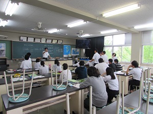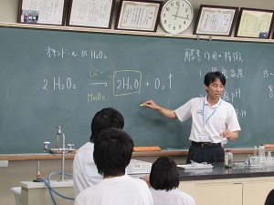 今日は生物基礎の授業の様子を紹介します。実験を行い、酵素の働きについて勉強しているところです。生徒たちも興味津々で授業に参加していました。
