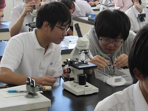 一人に一台の顕微鏡が準備されており、生徒たちも楽しく観察していました。