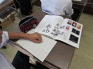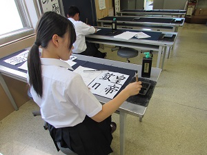 書道は楷書の古典「孔子廟堂碑」の臨書を黙々と取り組んでいました。