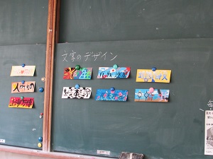 美術は好きな文字をデザインする授業で、今日は1時間目ということで文字選びをしていました。