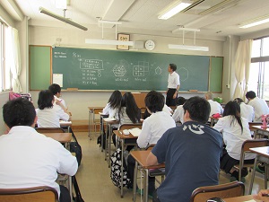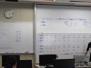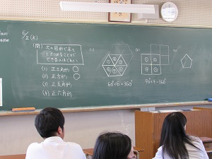 1年生の数学の授業風景を紹介します。確率の問題で、「階乗」を生徒は学んでいました。ユーモアあふれる授業で生徒も楽しく授業に臨んでいました。