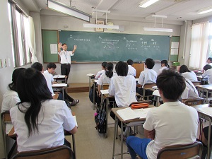 くまモンとふなっしーを国民に見立てるなど、工夫を凝らした授業で生徒も楽しく授業に参加していました。