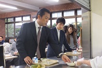 本校は、午後5時から完全給食が実施されています。食堂付の厨房で毎日3人の給食の先生方に作っていただきます。メニューも豊富で、家族的雰囲気のなかで、いつも温かい食事ができるようになっています。