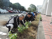 わざわざ作業の手伝いに来てくれた生徒もおり、除草から耕し、苗植え、水まき、掃除と職員生徒が一丸となって1時間ほど作業をしました。そして、今日植えたプシキニュアは3~4月に花を咲かせます。春がとても待ち遠しいですね。