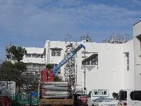 情報棟の外壁塗装及び防水工事はほぼ終わり、足場の解体が行われています。東棟のトイレ改修工事もいよいよ佳境にはいりました。