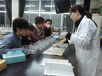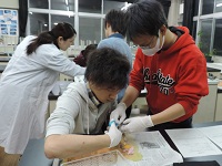 まず、先生が解剖手順の説明をしながら、実際に解剖を見せてくれました。