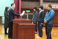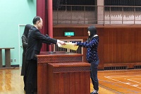 表彰式では、全国高等学校定時制通信制生徒生活体験発表大会で奨励賞を受けた、2年大久保さん。県保健だよりコンクールで優秀賞を受けた生徒会。そしてクラスマッチの上位入賞チームの表彰がありました。それぞれに輝いた笑顔で校長より表彰状をいただきました。