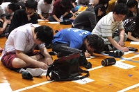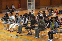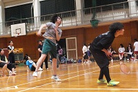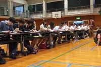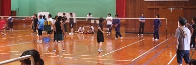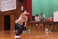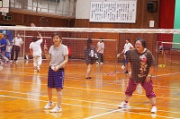 蒸し暑い体育館内には、校長先生の応援の中、生徒たちの熱気があふれ、汗だくだくの試合展開でした。予想に反して、初戦で敗退する先輩!、着々と駒を進めるペア!