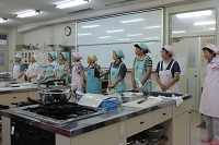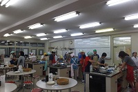 実習の後は、各班ごとにテーブルを囲み笑い声があふれる会食になりました。