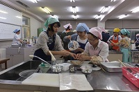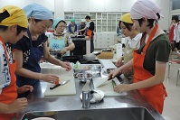 7月22日(水)に、近隣の出水南地区の熟年者の方10名をお招きして、1・2年生40名が合同調理と交流会を行いました。