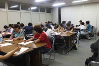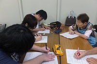 片付けの後、各班ごとにお勉強会です。日頃の暮らしの様子や、エコ活動への取組・地球温暖化を抑えることにつながりそうな体験や、技・知恵などを教えていただきました。また戦争体験なども含めた熟年者の方々の貴重な人生体験は生徒たちの今後の人生にとって大きな糧となることでしょう。