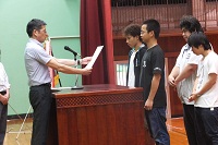 表彰式では、6月開催の県定通体育大会の入賞部表彰、生活体験作文発表会出場生徒の表彰と10月の県定通文化大会へ出場する生徒の発表がありました。
