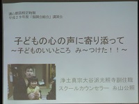 グループワークをたくさん取り入れながら、子どもの秘められた宝の探し方についてお話をされました。分かりやすくユーモアあふれるご講演ありがとうございました。