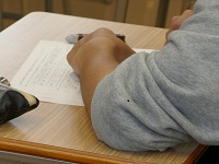 事前アンケートをもとに、本校生徒の主なストレス原因や対処法の特徴についての解説や、音楽に合わせて体を動かす映像があり、一緒に体操をしました。