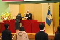 4月9日(木)に入学式が行われました。今年度の入学式は新型コロナウィルス感染予防により、新入生と保護者、そして職員だけで実施しました。校長先生の式辞では、昨年40周年を記念した伝統のある学校であり、校訓「自主」「責任」「創造」の意味と家庭や地域を大切にして、自立した大人になってほしい。生涯学ぶ姿勢を持って成長してほしい。学校には多くの支援してくれる人がおり、感謝の気持ちを忘れずに努力してほしいなどが話された。またしばらく臨時休校になるが感染防止に努めることが述べられた。 新入生代表からは入学して期待と不安もあるが、先輩たちを見習い勉強に頑張り、心豊かな人になりたいと誓いの言葉を述べた。(文責 吉武)