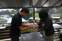 湧心館高校定時制(以下、湧(ゆう)定(てい))の「ビジネス基礎」と「総合実践」を履修している1年生7名と、3年生5名は、今年5月から、フェアトレードについて調べ学習をしたり、特別講座で外部講師の方々のお話しを聴いたり、熊本学園大学の学生さんたちとの交流会で情報交換をする等、さまざまな形でフェアトレードを学んできました。その学習の成果を形にするために、江藤ボートハウス様にご協力いただき、「湧定オリジナルフェアトレードカフェメニュー」を考案し、開発商品の完成を目指しました。