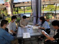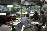 令和5年(2023年)10月11日(水)午後3時~4時の約1時間、商品開発会議のため、江津湖の江藤ボートハウスさんを訪問しました。湧心館高校定時制からは1年生3名が出席し、今回が初顔合わせということで、各自が作成した名刺を渡し、自己紹介から始めました。