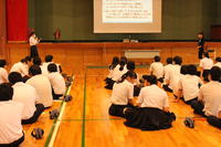 生徒は第1体育館(1、3年生)と第2体育館(2年生)に分かれて、