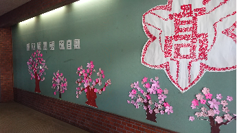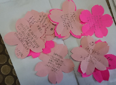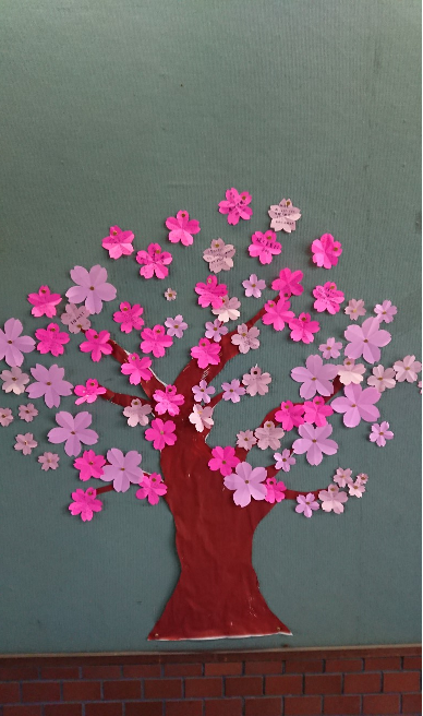 | 桜のメッセージカード | 生徒のメッセージが書かれた桜の木 | たくさん花が咲くといいな |