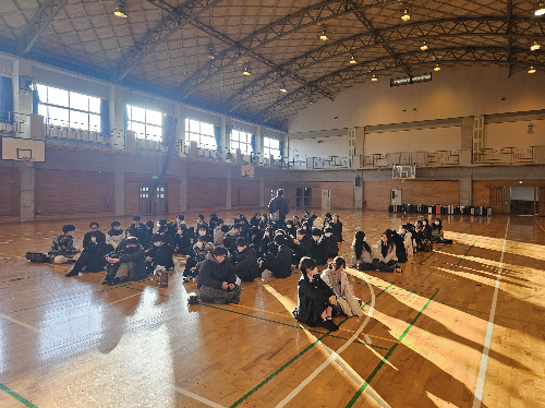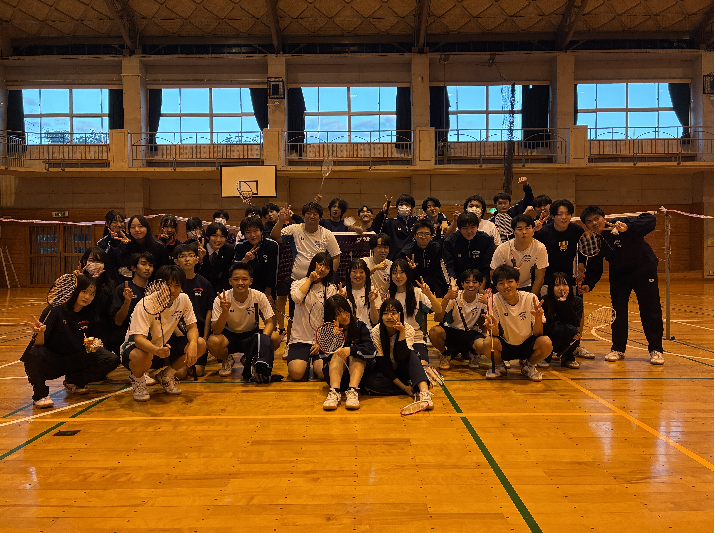 令和7年12月5日(金)・10日(水)・11日(木)の3日間、本校体育館でスポーツを楽しむためのフェスティバルを行いました。今年は、放課後の1時間、3日間で実施するバドミントンを企画しました。生徒会執行部のみなさんと、体育委員の協力で毎日30名を超える生徒が参加し、部活動加入率も低いのですが、スポーツに触れることやイベントが好きな生徒と職員も一緒に楽しみながら実施する事ができました。この期間は、学年を超えた交流もできたようで、コートを互いに入れ替わりながら『ナイス!』『いいよ』等の声もかけとても活気ある時間を過ごしました。今後も種目を変え、スポーツに触れる活動に繋がるように継続していきたいと思います。